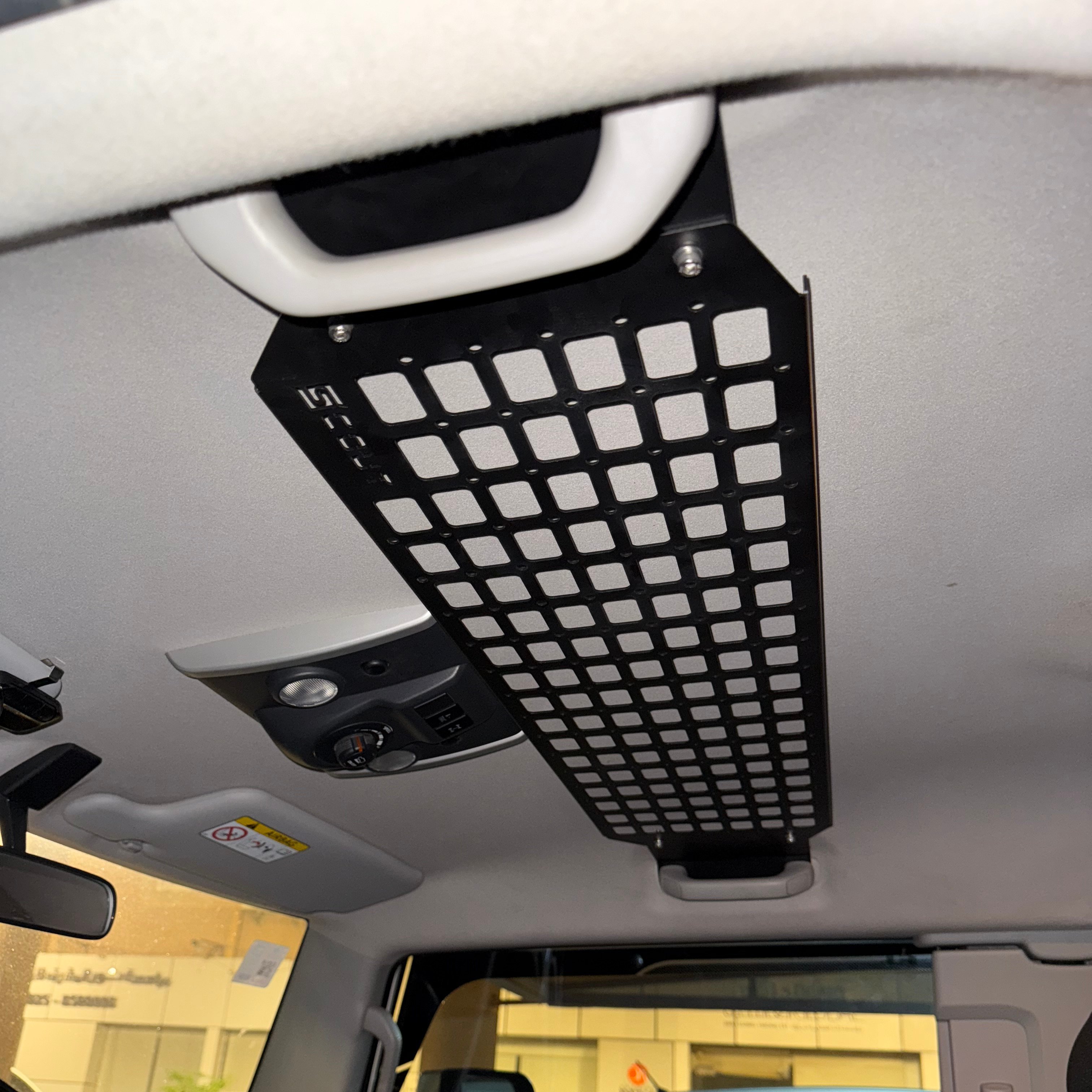 Designed to maximize storage space by utilizing the overhead space between the driver and passenger seats. It allow easy access for driver. Offers customizable mounting for gear, it's a great place to mount MOLLE bag, switch panel, radio transceiver, etc